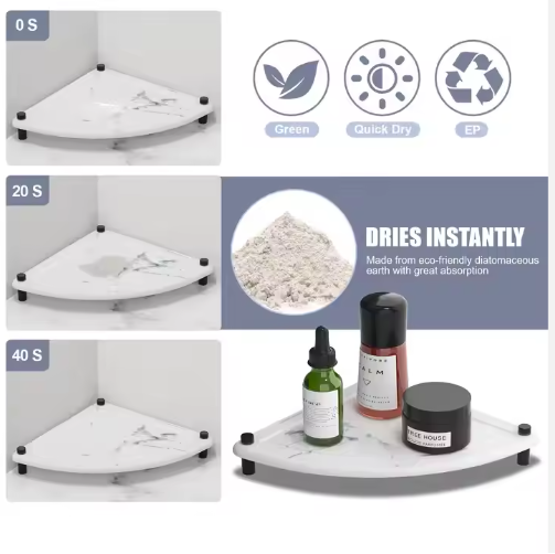 ✅ Instant-Dry Diatomaceous Corner Shelf