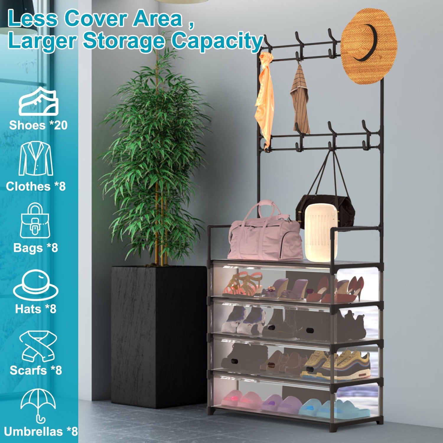 DIY Hall Tree Shoe Rack Organizer – 5-Tier Freestanding Coat Stand with Hooks for Bedroom & Entryway
