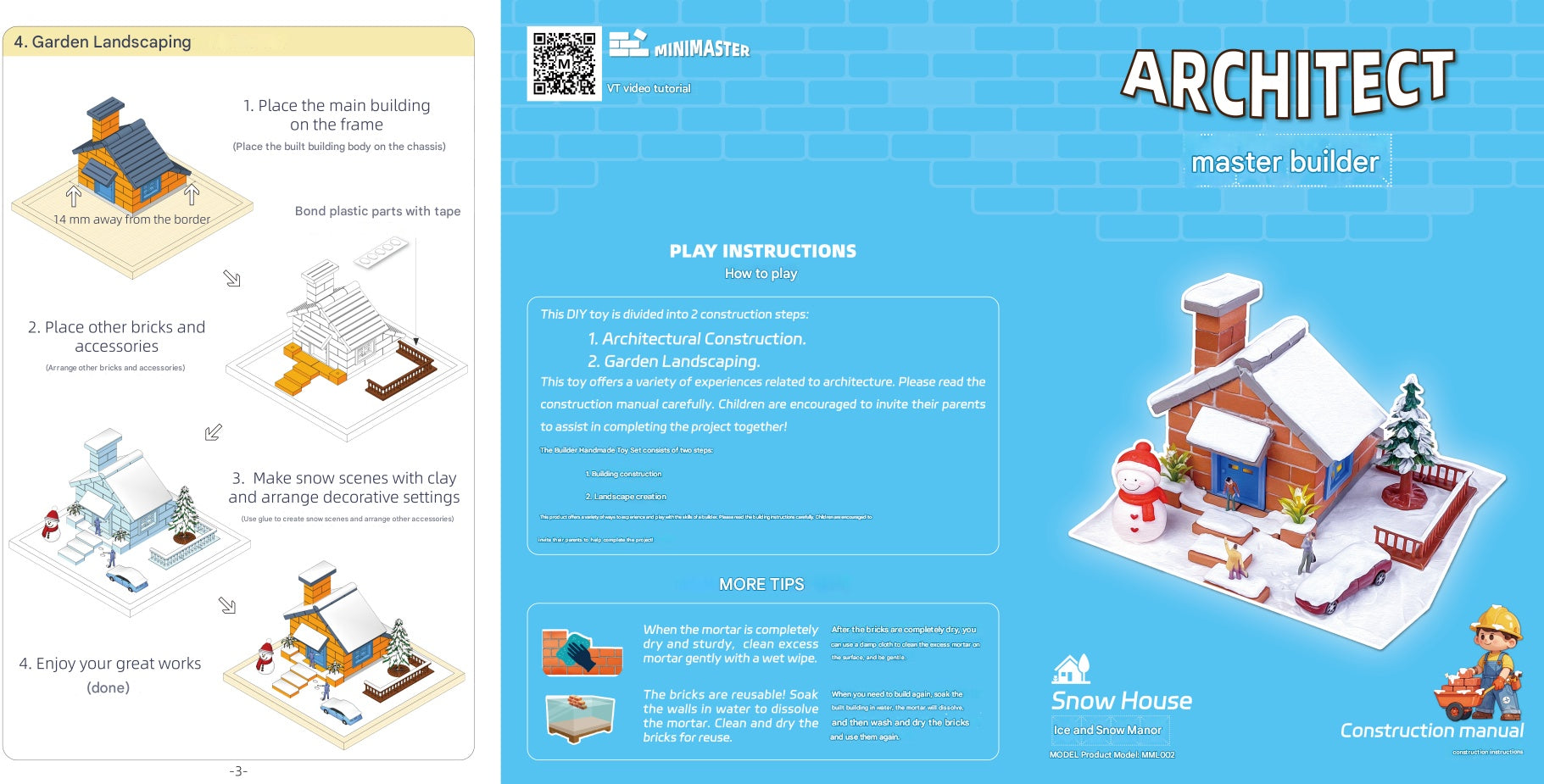 - Roof tiles, chimney, walls, doors, windows and landscaping parts let children assemble a true architectural model.