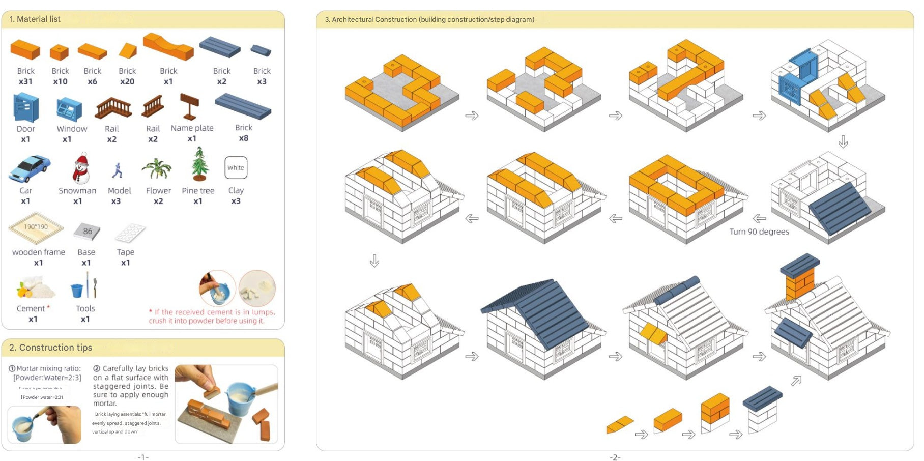 - Material: Real clay brick, starch adhesive, ABS plastic accessories, wood base